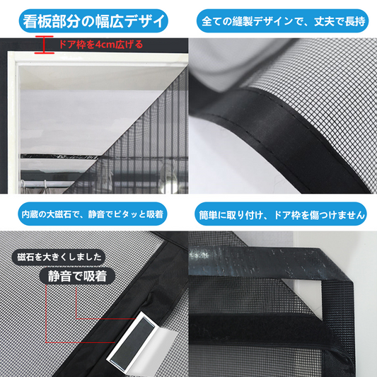 Hompresのれん,蚊よけ,穴を開けずに,磁石吸着