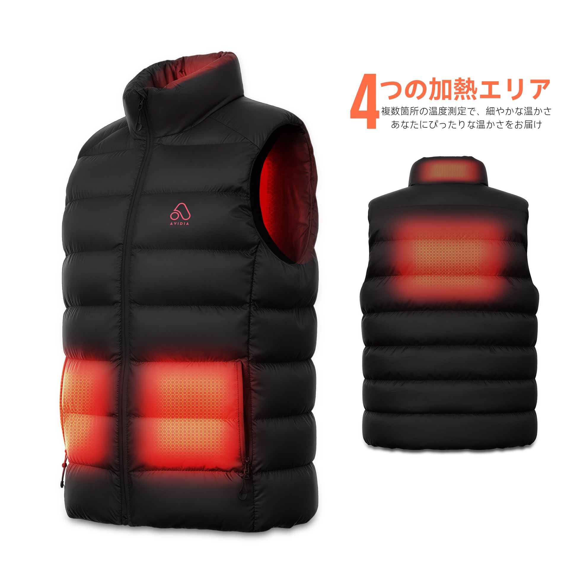 AVIDIA 電熱ベスト カーボンナノチューブ加熱 速暖 軽量で快適 4つエリア加熱