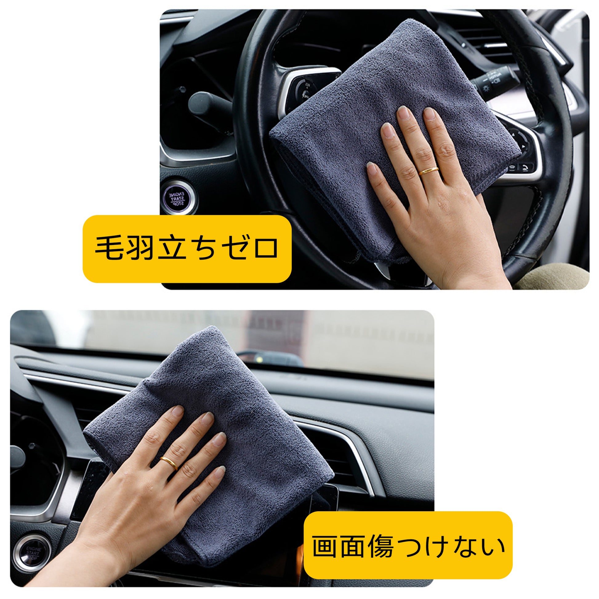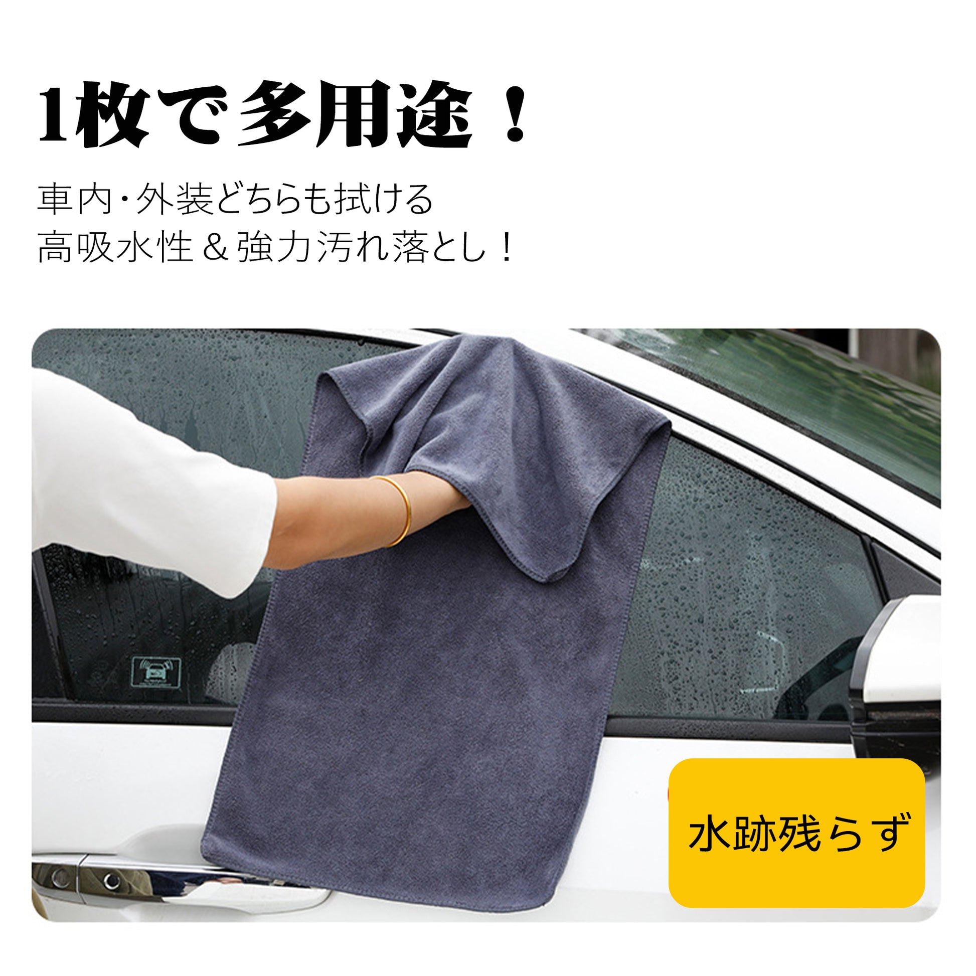 【高吸水・速乾タオル】ロングツイストマイクロファイバーで、車体やガラスの水分を瞬時に吸収・拭き取り可能。