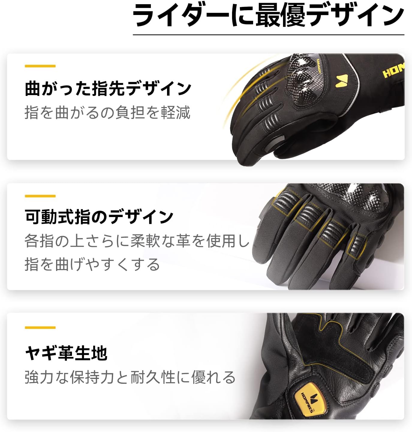 【ライダーにベストな選択】:人間工学に基づいて、まっすぐな指デザインの代わりに曲がった指のデザインが採用されています。また、手のひらは摩擦に強く丈夫なヤギ革を使用、動作負担を最大限に軽減、長時間のグリップをサポートしています。反射ストライプを装備し、より安全な夜間運転や登山することができます。締めひもが付き、紛失防止できます。