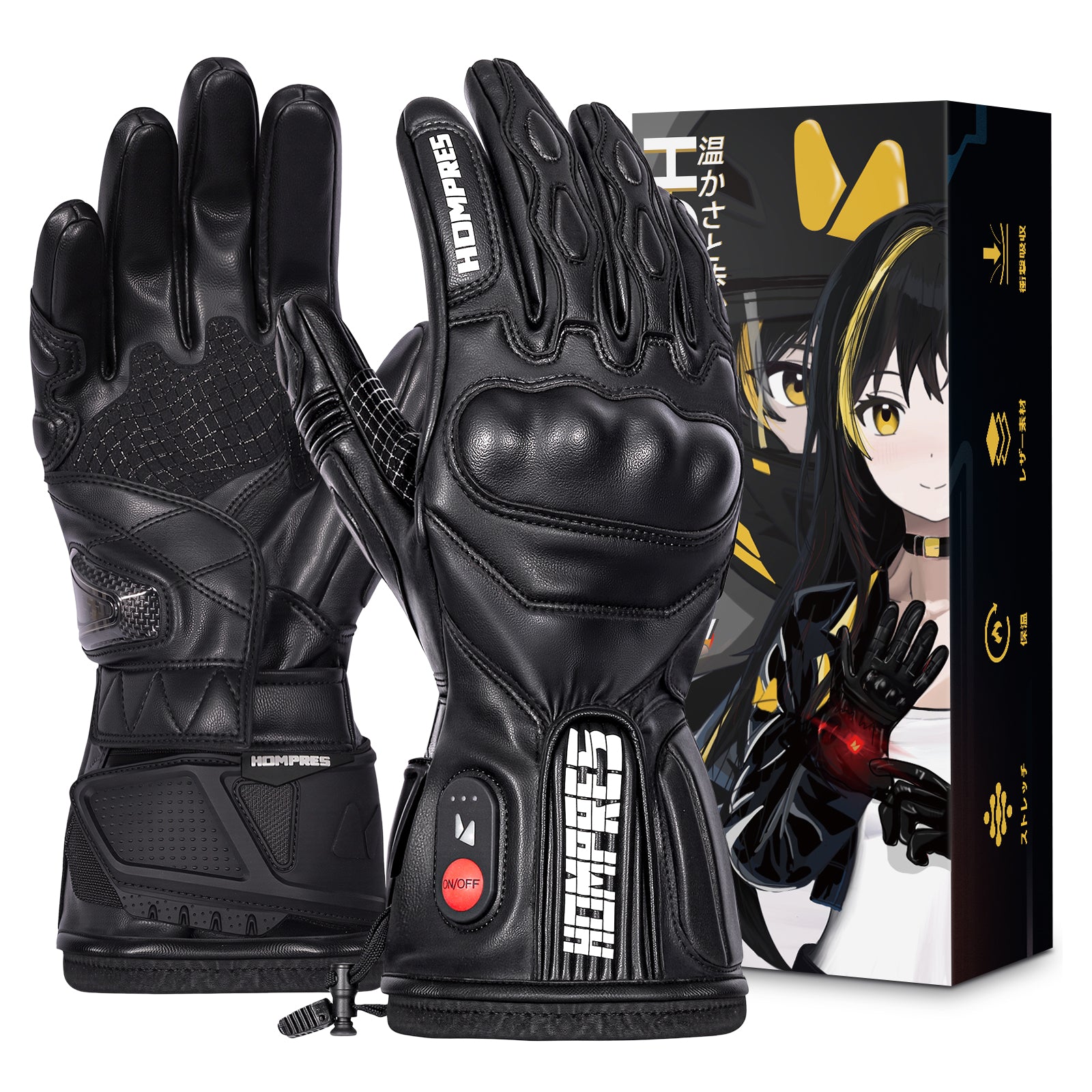 Hompres 2025年 電熱グローブ 全体PU革電熱グローブ 11.1V両面全体発熱 手のひらと同面の指先発熱 残量表示 シガー電源ケーブル付き インナーグローブ付き モデルB
