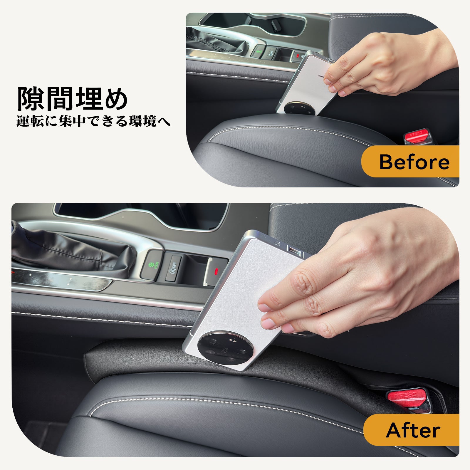 落下防止設計:車内シートの隙間に挟むだけでスマホ・カード・小物の落下を防止する隙間クッション設計。手で押すだけで簡単設置、工具不要。