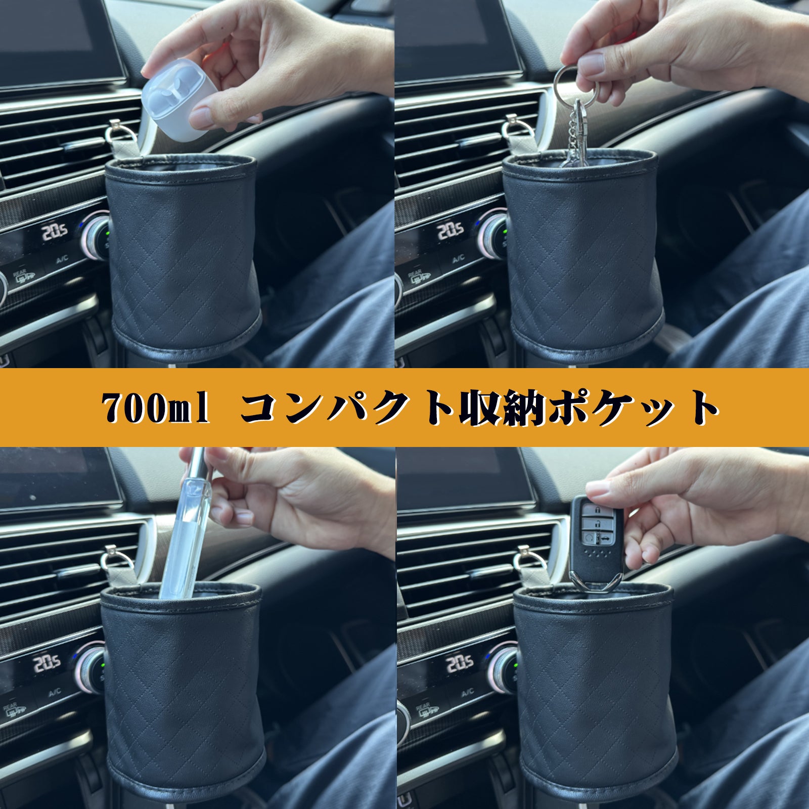 700ml車用収納ポケット付属:運転中や日常使いの鍵・小銭・ティッシュなど、よく使う小物をまとめて収納・整理可能。折り畳み式でコンパクト&手洗い対応で清潔を保て、車内の収納に便利です。